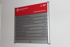 Všechny orientační tabule a současné popisky u dveří jednotlivých kanceláří již byly demontovány a staré popisky jsou nahrazovány novými. Zárověň jsou instalovány všechny další prvky systému.