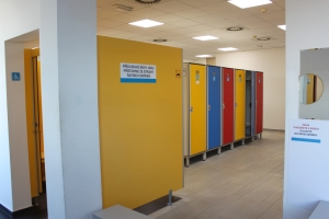 Rekonstrukce šaten - zahrnuje výměnu podlah a povrchů stěn. Bude provedena kompletní obnova převlékacích boxů a šatních skříněk, a to včetně instalace nového zámkového systému. Výměna se týká všech prvků vykazujících značné opotřebení nebo poškození, které již nelze opravit.
