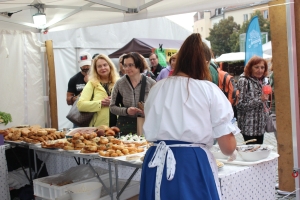 Během sobotního dopoledne se počasí umoudřilo, udělalo se krásně a město ovládl pestrobarevný rej – jedno vystoupení střídalo druhé, lidé zcela zaplnili Hradišťský jarmark na Masarykově náměstí, všechny ulice, parky i náměstí a město ožilo vínem, tradicemi a zábavou.