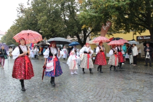 Sobotní slavnostní krojovaný průvod, ve kterém se prezentují desítky obcí a měst regionu, a je unikátní přehlídkou krojů, zpěvu a hudby, prošel městem, dešti navzdory. Řada krojovaných oblékla pláštěnky, další použili deštníky. Slavnostní průvod letos tvořilo asi 2,5 tisíce krojovaných a představilo se v něm na 70 obcí a měst.