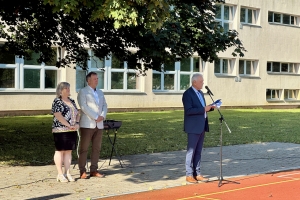 Základní škola Sportovní bude stejně jako dříve nabízet, kromě výuky v běžných třídách, možnost navštěvování tříd s rozšířenou výukou tělesné výchovy. Ve škole budou všem dětem k dispozici opravené učebny, a to zejména z hlediska vymalování a oprav nábytku. Během prázdnin ve škole nechali také opravit omítky a podlahy na chodbách, v prostorách pro školní šatny a v areálu tělocvičny. Školu čeká v tomto roce vybudování, připojení a využívání fotovoltaické elektrárny na střechách budov školy. „Máme pěkné a dobře vybavené učebny se spoustou výukových pomůcek a programů, ale také informační technologie, aby se mohly lépe využívat interaktivní učebnice a zobrazování programů a materiálů. Pořídili jsme další nové chromebooky a také několik velkých interaktivních panelů místo tabulí. Zavádíme nové pojetí výuky informatiky, včetně výuky programování a práce s robotickými pomůckami,“ uvedl ředitel ZŠ Sportovní Milan Melichárek (na snímku vítá děti poprvé ve škole, spolu s místostarostkou Pavlínou Jagošovou a zástupci 1. FC Slovácko).