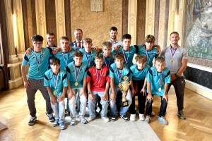 Letošní mistrovské výsledky a výkony přivedly mladé fotbalisty a atlety ze Základní školy Sportovní do obřadní síně uherskohradišťské radnice, kde je ve čtvrtek 19. června přijal starosta města Stanislav Blaha.