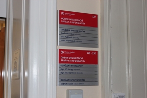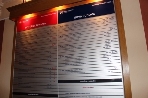 Všechny orientační tabule a současné popisky u dveří jednotlivých kanceláří již byly demontovány a staré popisky jsou nahrazovány novými. Zárověň jsou instalovány všechny další prvky systému.